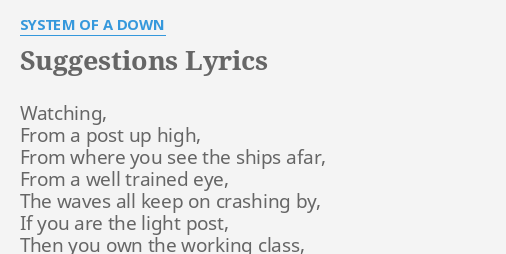 Watching From a post up high From where you see the ships afar From a well trained eye The waves all keep on crashing by If you are the light post Then you own the working class. Lyrics to Suggestions by System Of A Down.